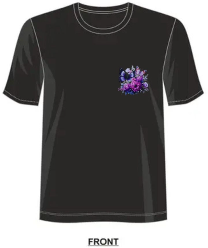Affirme ton style avec ce t-shirt au motif papillon violet et floral. Ses couleurs profondes et ses détails artistiques apportent une touche féminine, moderne et inspirante à toutes tes tenues.