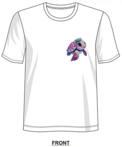 Dans un univers où la magie se mêle à la mer, cette petite tortue aux couleurs délicates nage entourée d’une énergie apaisante et florale.