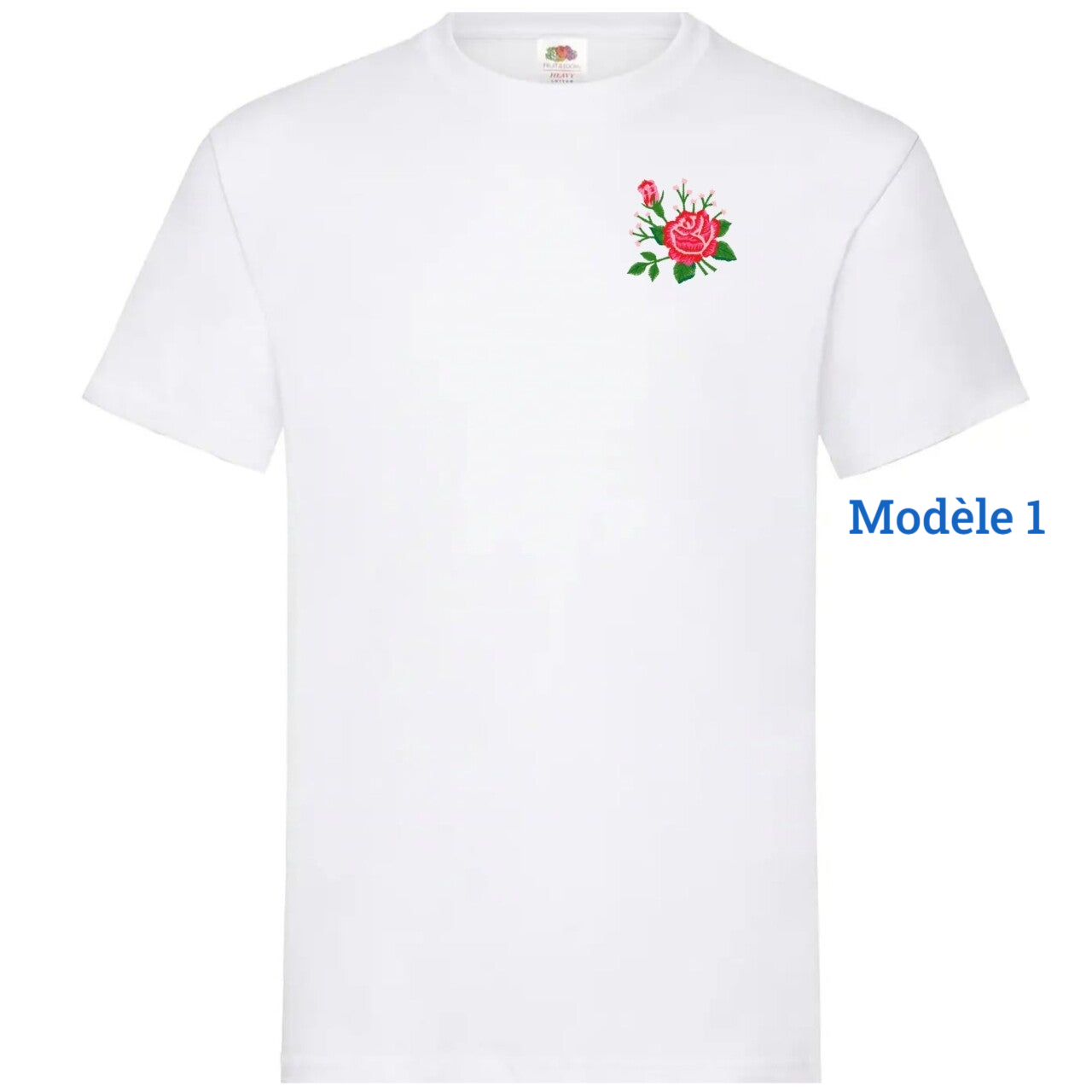 Ajoutez une touche de charme à votre garde-robe avec notre t-shirt blanc brodé d'une splendide rose. Confectionné à 100% en coton, il offre confort et style. Idéal pour toutes les occasions, il est à la fois élégant et décontracté.