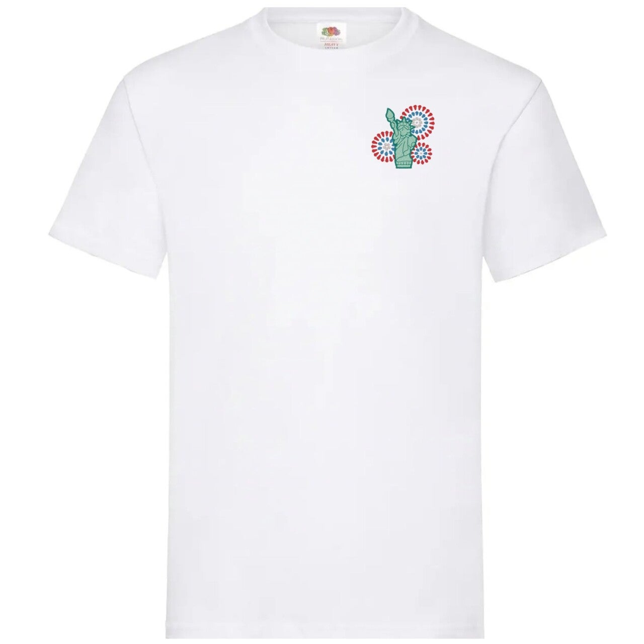 Exprimez votre style avec notre T-shirt Statue de la Liberté, orné de feux d'artifice brodés. Fabriqué en 100% coton, il offre un confort inégalé et une touche de patriotisme élégant à votre garde-robe. Parfait pour toutes les occasions décontractées !