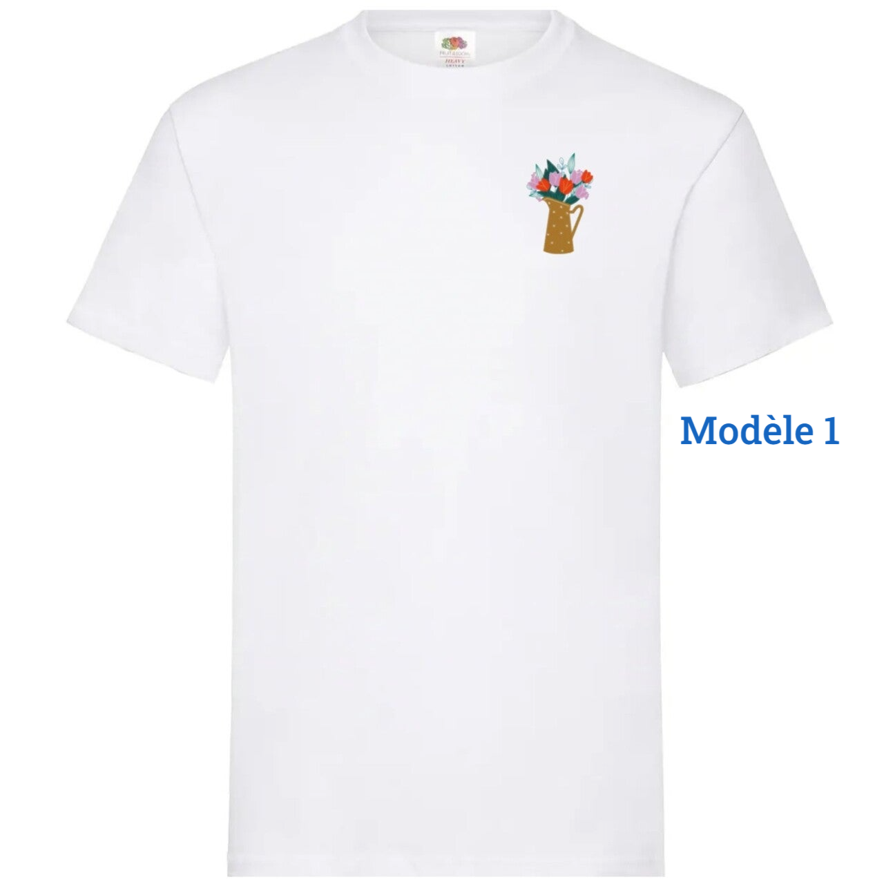 Ajoutez une touche de charme floral à votre garde-robe avec ce t-shirt en coton brodé. Sa douceur et son design élégant avec un vase fleuri brodé en font un choix parfait pour toute occasion décontractée.