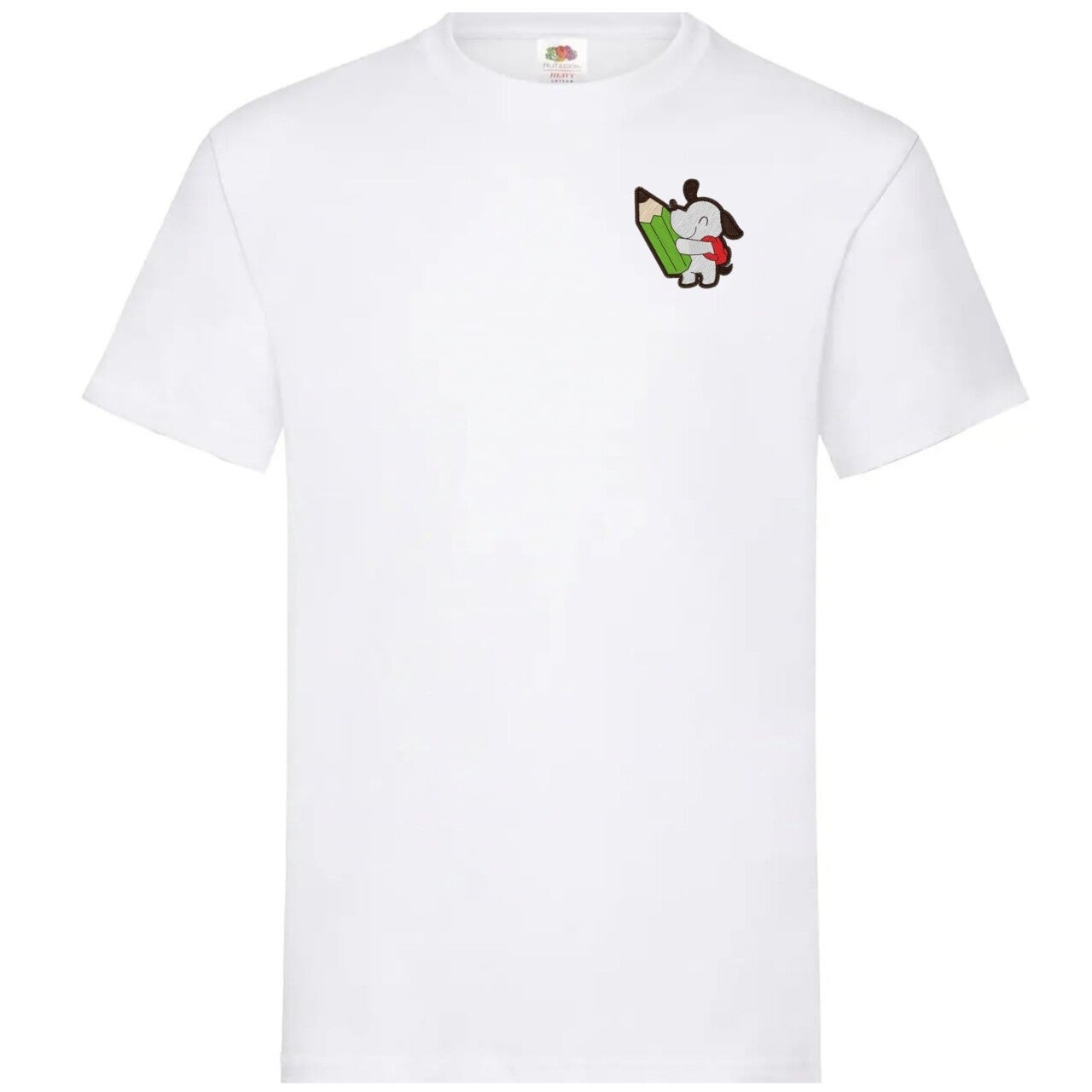 Apportez une touche ludique à votre garde-robe avec ce t-shirt en coton 100% doux. Le motif de chien brodé avec un crayon est parfait pour les amoureux des animaux et de la créativité. Confortable et stylé, il convient à toutes les occasions décontractées.
