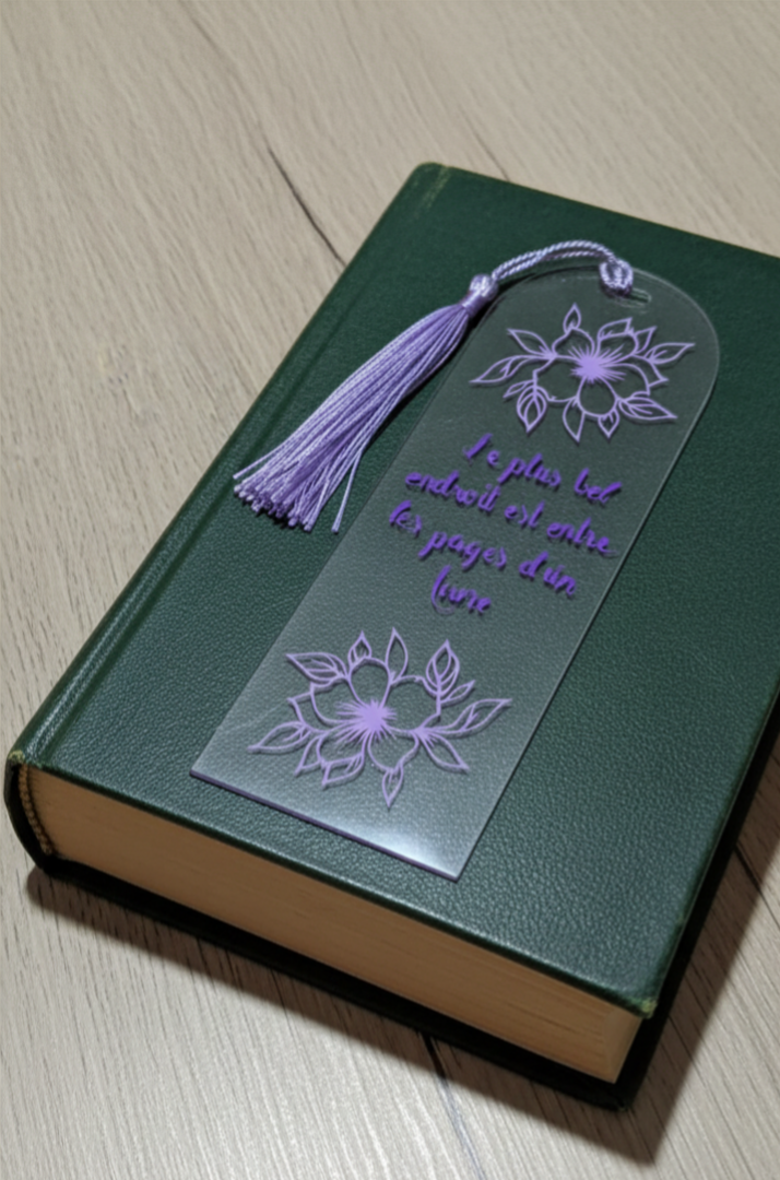 Marque-page transparent avec inscription