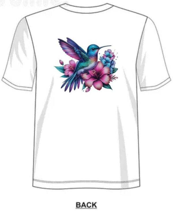 T-shirt 100 % polyester orné d’un motif d’oiseau aux couleurs vives entouré de fleurs. Grâce à sa matière résistante, les couleurs restent intenses et éclatantes dans le temps, lavage après lavage. Léger et confortable, il est idéal pour un style original et moderne.