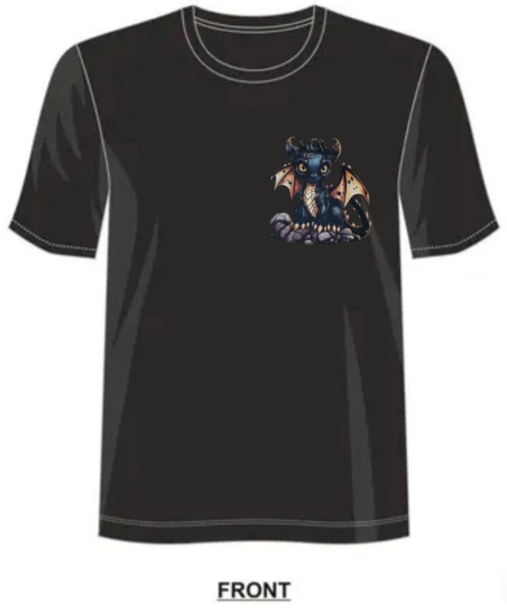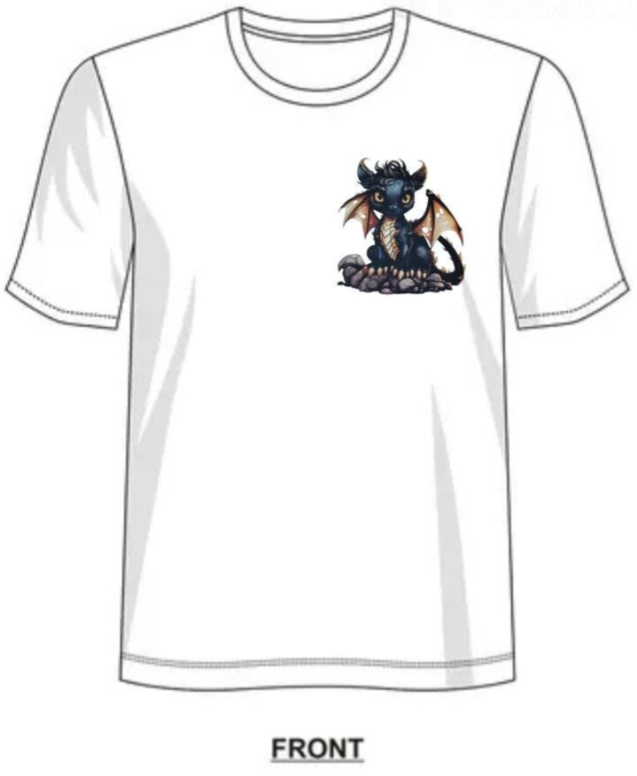 T-shirt unisexe 100 % polyester, léger et confortable, conçu pour une excellente tenue dans le temps. Son design met en scène un adorable petit dragon aux grands yeux expressifs, posé sur des rochers, apportant une touche fantastique et attendrissante. Idéal pour un usage quotidien.