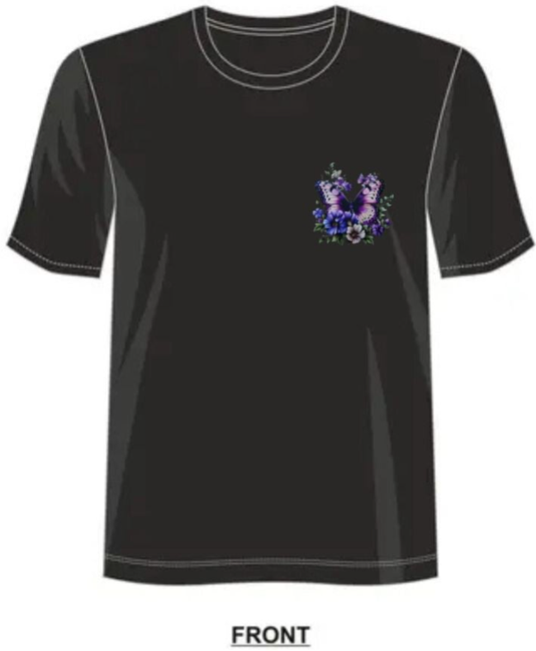 Affirme ton style avec ce t-shirt au motif papillon violet et floral. Ses couleurs profondes et ses détails artistiques apportent une touche féminine, moderne et inspirante à toutes tes tenues.
