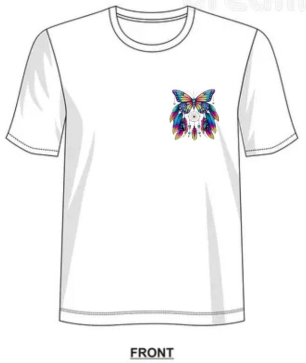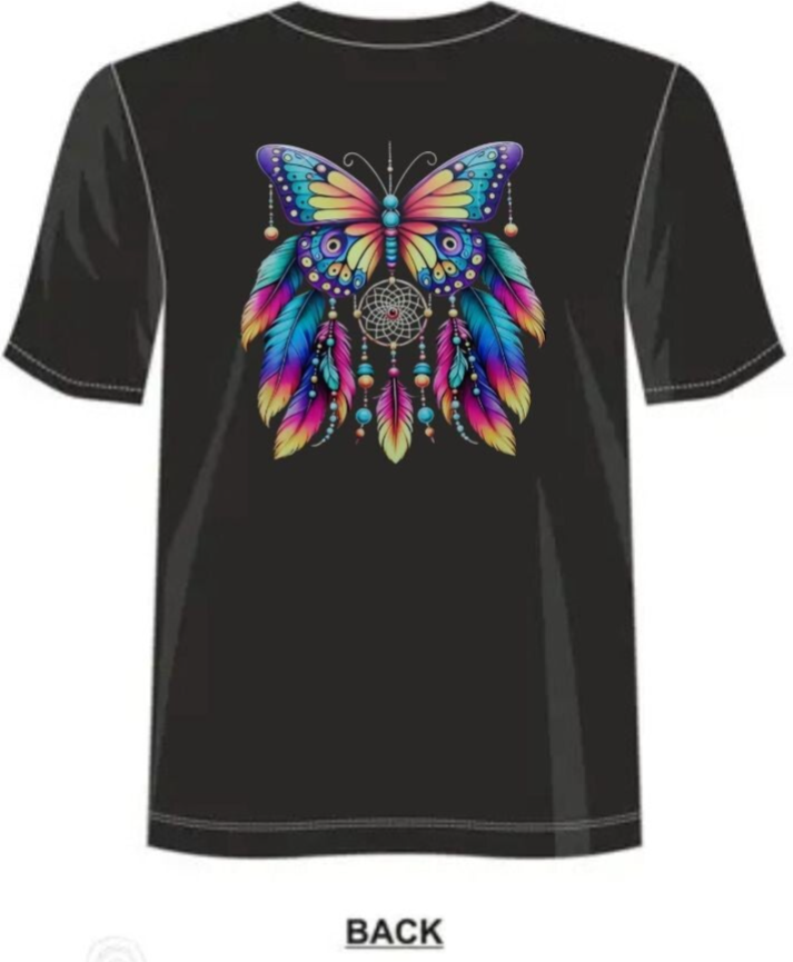 Affiche un style vibrant avec ce t-shirt au papillon multicolore décoré de plumes et de perles façon attrape-rêves. Un design coloré et spirituel qui attire tous les regards.