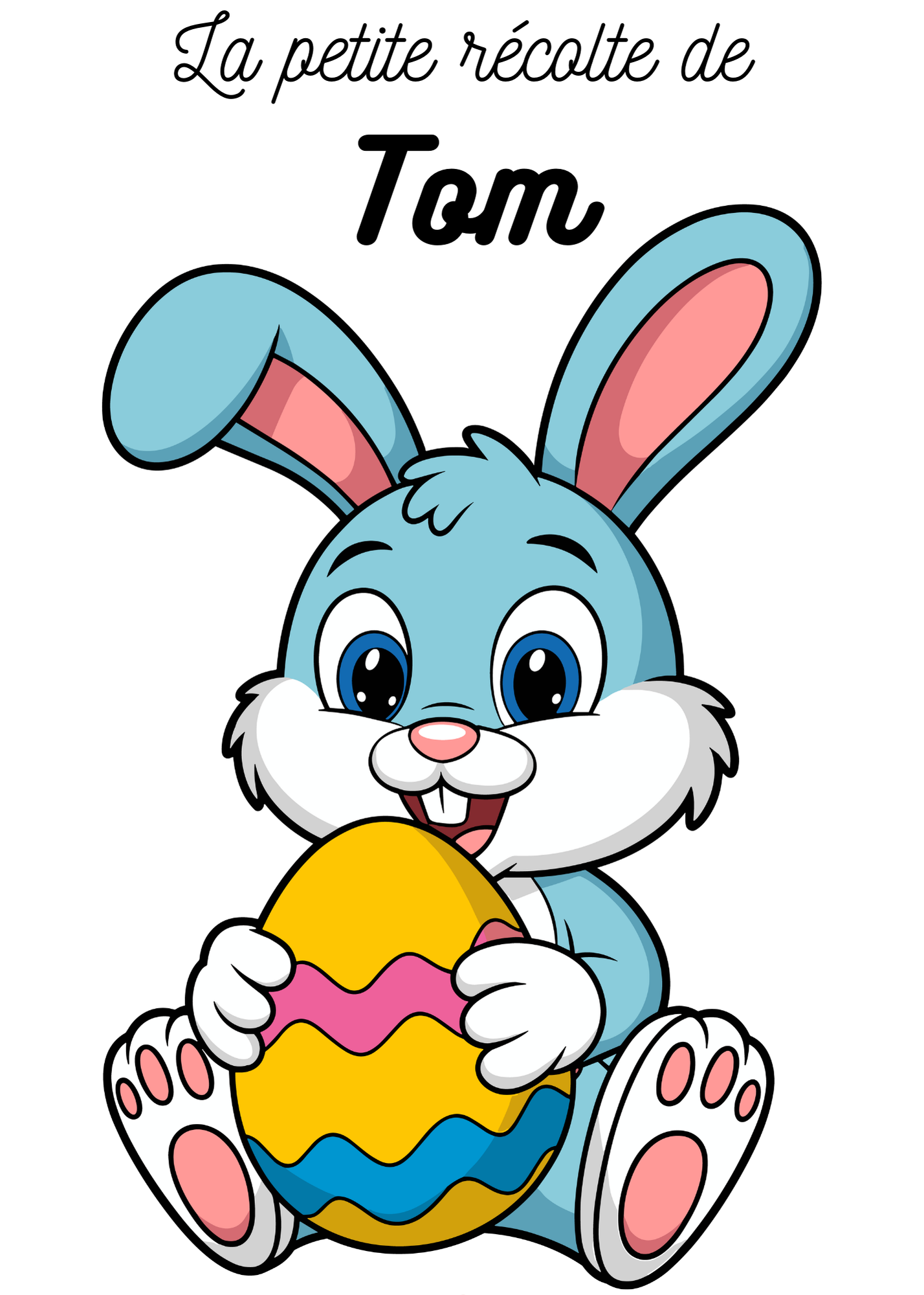 Rendez la chasse aux œufs encore plus amusante avec ce tote bag de Pâques personnalisé avec prénom. Son illustration colorée d’un lapin tenant un œuf de Pâques plaira à coup sûr aux enfants.